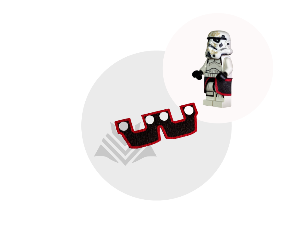 Give your minifig a sleek, detailed look with this black skirt featuring a bold red outline! Made from high-quality fabric, it’s durable and easy to put on. Perfect for warriors, royalty, and custom creations! Minifig not included.