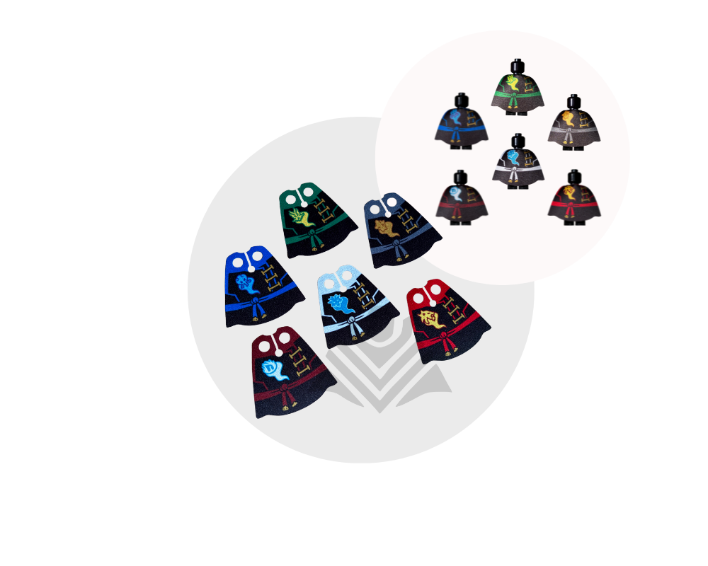 Equip your entire ninja team with this Destiny Skybound-inspired cape pack! Includes capes for Jay, Kai, Nya, Cole, Lloyd, and Zane. Made from high-quality fabric, each cape is durable and easy to put on. Perfect for action scenes, custom builds, and collectors! Minifigs not included.