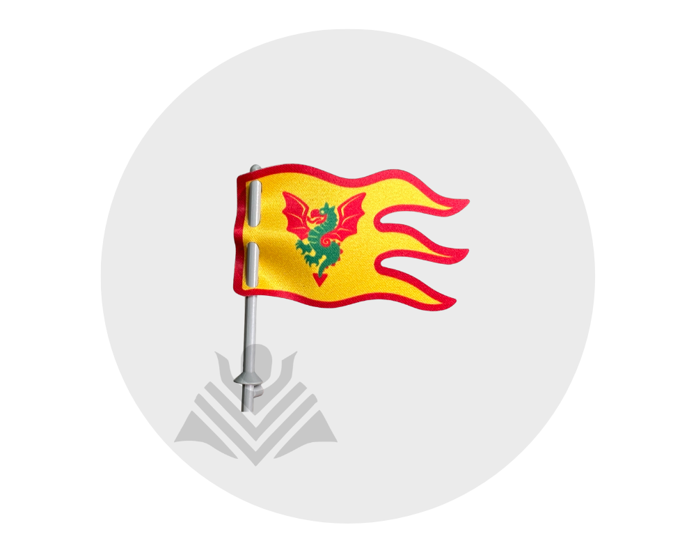 Raise your minifig army’s banner high with this large Dragon Knight inspired flag! Double-sided print with logos on both sides. Made from high-quality fabric, it’s durable and easy to attach. Perfect for castles, knight armies, and medieval displays! Minifig not included.