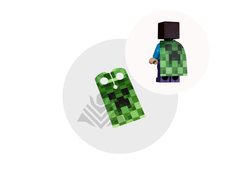 Give your minifig a bold, dynamic look with this Green Creeper inspired cape! Made from high-quality fabric, it’s durable and easy to put on. Perfect for heroes, villains, and custom builds! Minifig not included.
