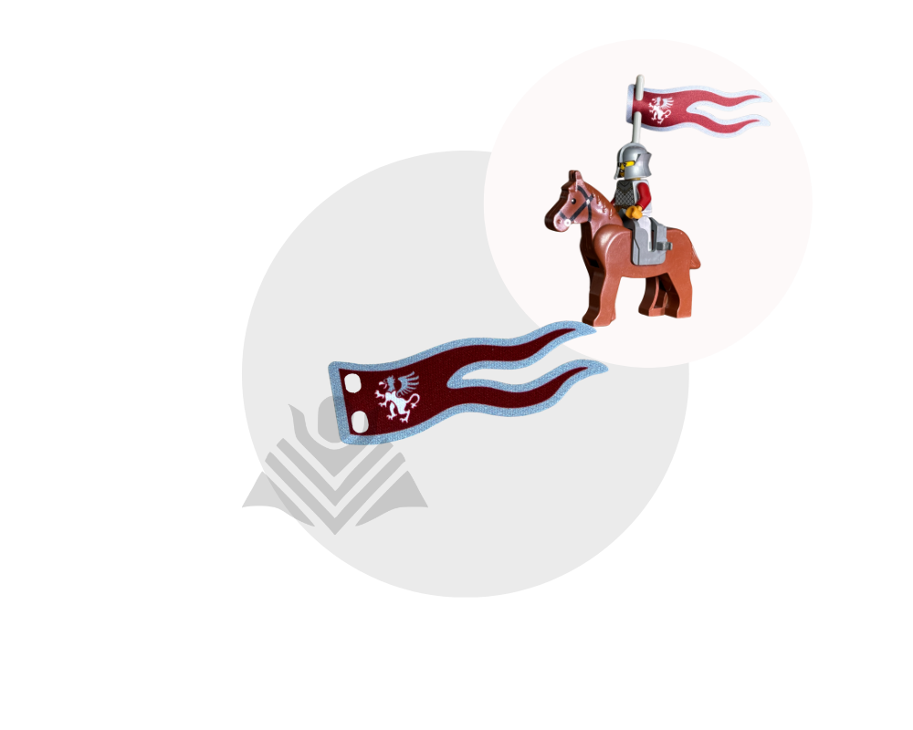 Add a touch of medieval style with this small Griffin Knight inspired flag! Double-sided print with logos on both sides. Made from high-quality fabric, it’s durable and easy to attach. Minifig not included.