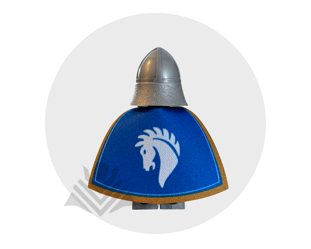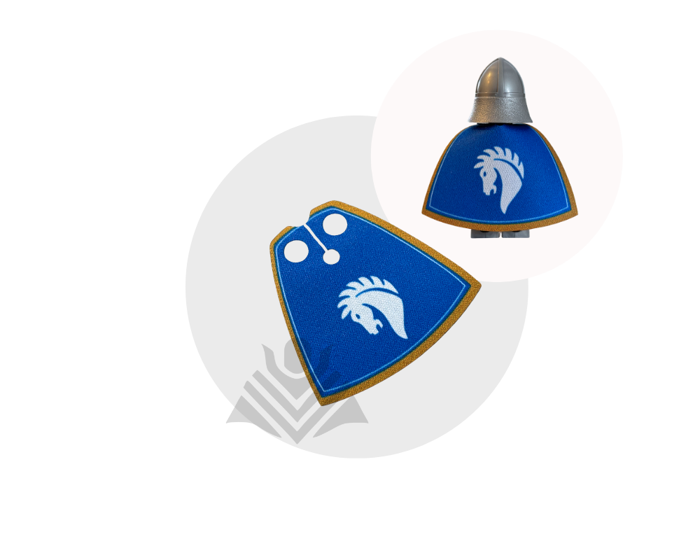 Give your minifig a noble, medieval look with this Horse Knight-inspired cape in blue! Made from high-quality fabric, it’s durable and easy to put on. Perfect for knights, squires, and royal guards! Minifig not included.