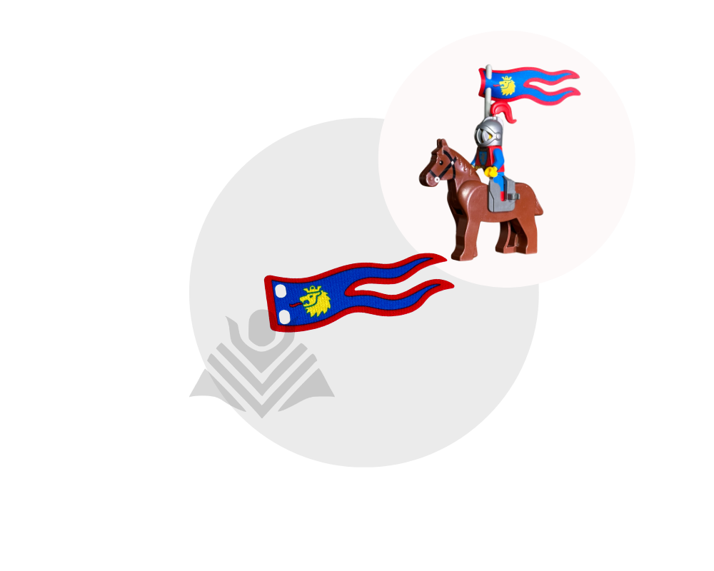 Add royal flair to your builds with this small Lion Knight inspired flag! Double-sided print with logos on both sides. Made from high-quality fabric, it’s durable and easy to attach. Minifig not included.