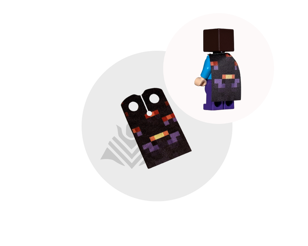 Give your minifig a dark, powerful look with this Menace inspired cape! Made from high-quality fabric, it’s durable and easy to put on. Perfect for villains, anti-heroes, and dramatic displays! Minifig not included.