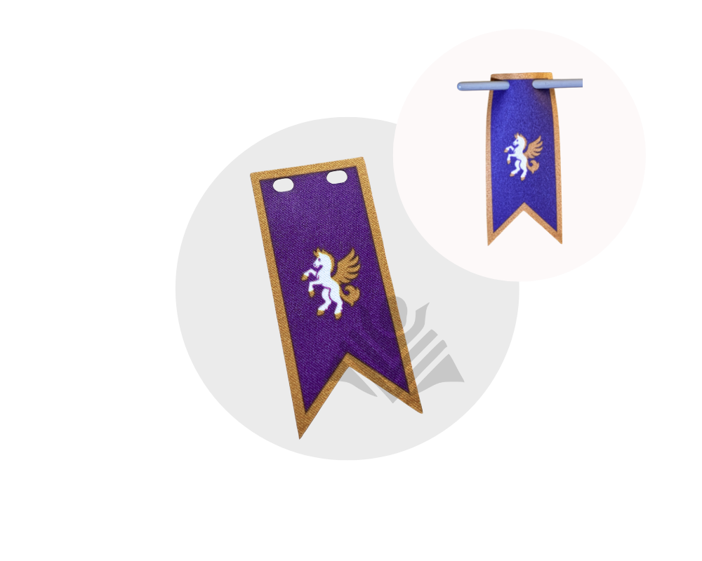 Elevate your medieval or fantasy display with this Pegasus Knight inspired banner! Printed on high-quality, durable material and double-sided with logos on both sides, it’s perfect for royal stables, elite knight orders, sky-themed builds, or heroic battlefield scenes. A striking way to add color and character to your setup. Minifig not included.