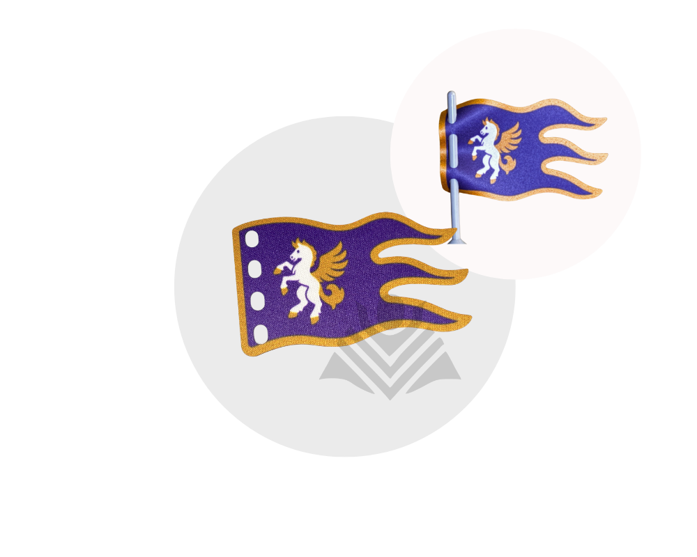 Enhance your medieval or fantasy setup with this big Pegasus Knight inspired flag! Printed on high-quality, durable material and double-sided with logos on both sides, it’s perfect for royal armies, sky-themed factions, watchtowers, and heroic battle displays. Minifig not included.