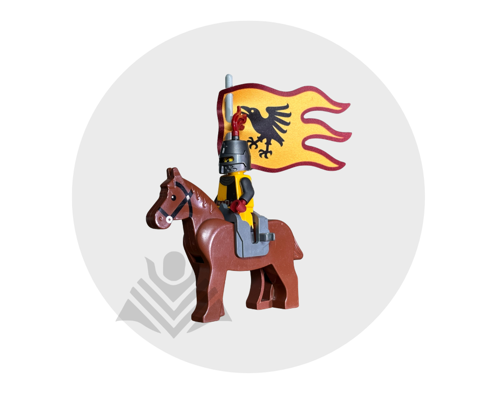 Give your medieval builds a striking touch with this large Raven Tournament Knight inspired flag! Double-sided print with logos on both sides. Made from high-quality fabric, it’s durable and easy to attach. Minifig not included.