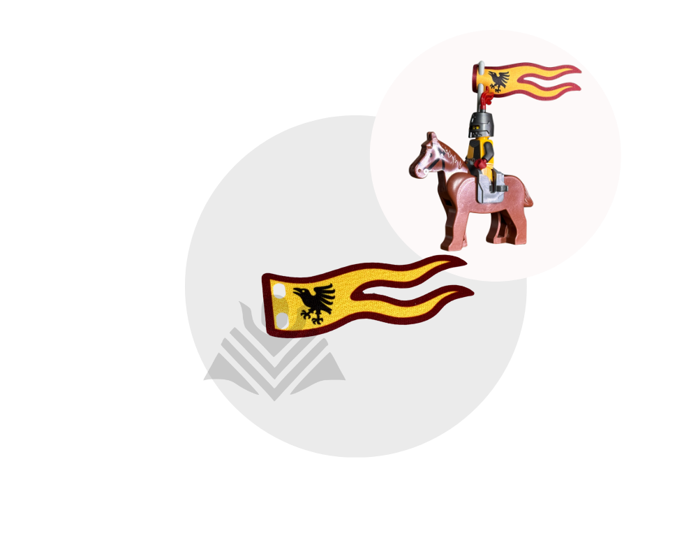 Add a bold medieval detail with this small Raven Tournament Knight inspired flag! Double-sided print with logos on both sides. Made from high-quality fabric, it’s durable and easy to attach. Minifig not included.