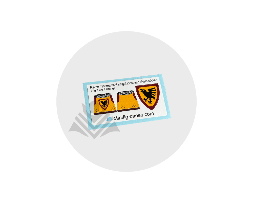 Customize your minifig with this Raven / Tournament Knight inspired torso and shield sticker set! Made from high-quality, durable vinyl, these stickers are easy to apply and perfect for medieval knights, tournaments, and castle scenes. Minifig not included.
