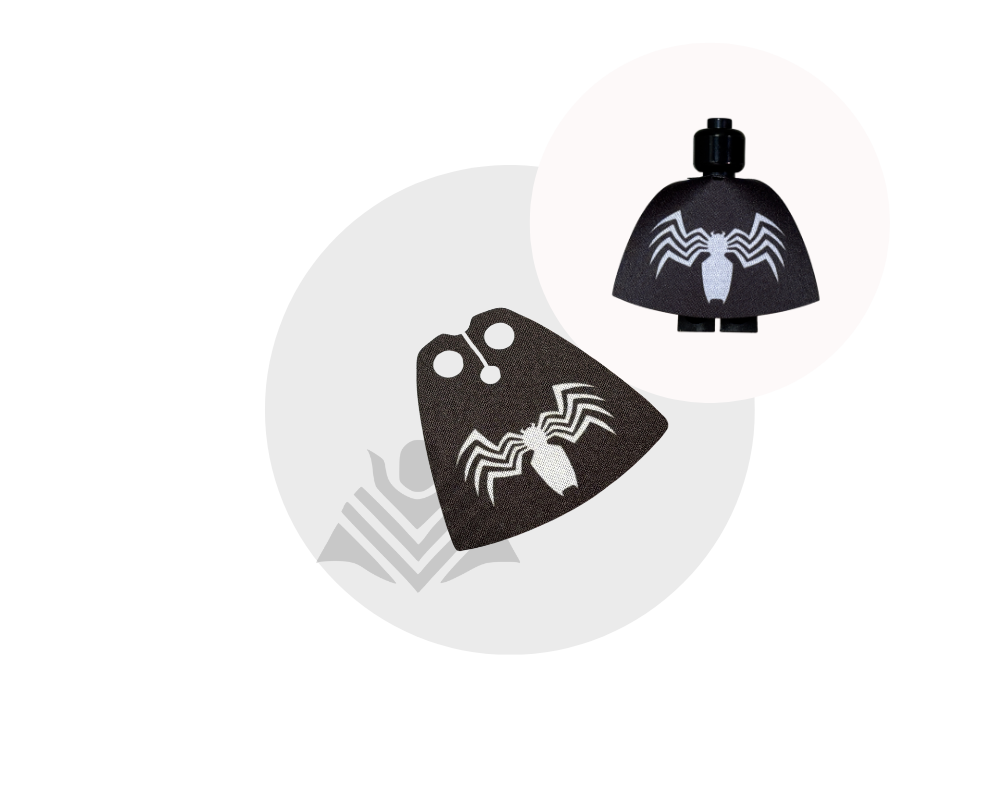 Give your minifig a dark, powerful look with this black Symbiote Spider inspired cape! Made from high-quality fabric, it’s durable and easy to put on. Perfect for villains, anti-heroes, and custom superhero builds! Minifig not included.