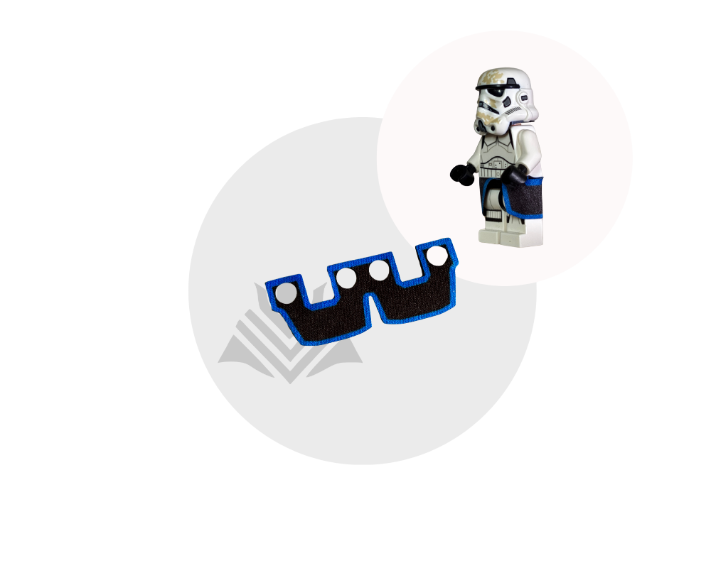 Give your minifig a sleek, detailed look with this black skirt featuring a bold blue outline! Made from high-quality fabric, it’s durable and easy to put on. Perfect for warriors, royalty, and custom creations! Minifig not included.