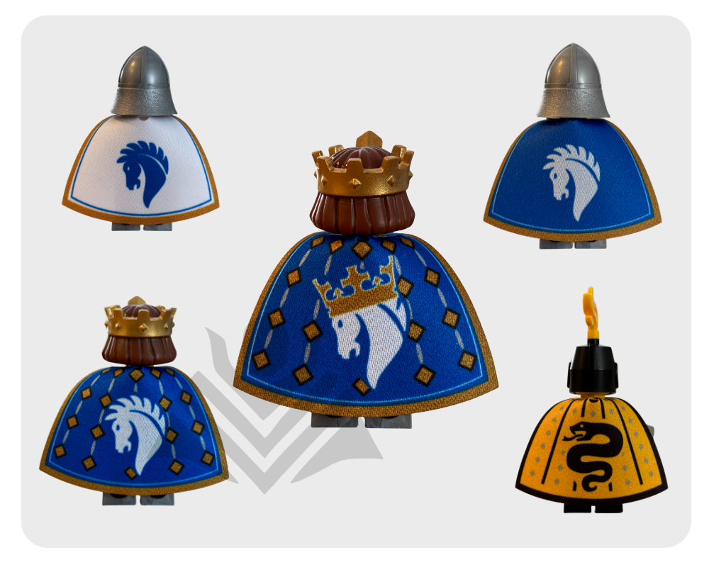 Made from high-quality fabric, each cape is durable and easy to put on. Perfect for knights, kings, and fantasy armies! Minifigs not included.