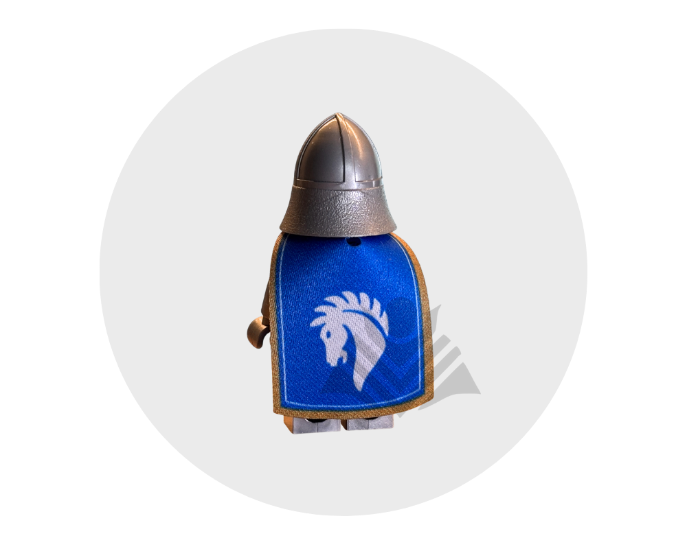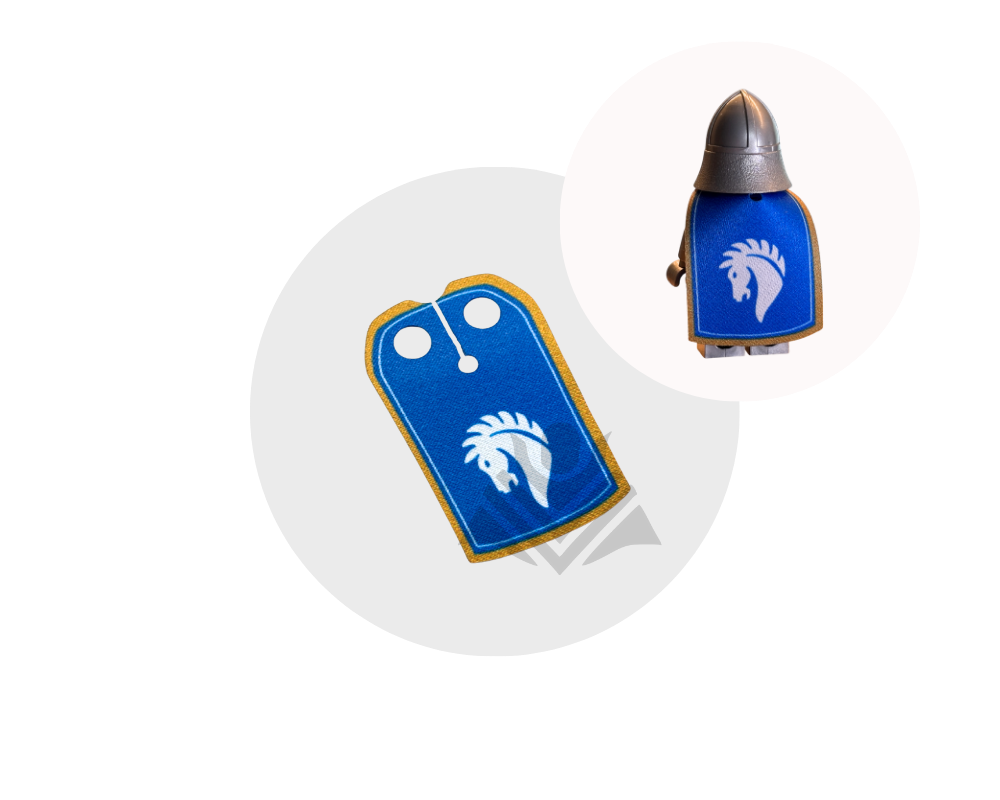 Give your minifig a noble, heroic look with this long Horse Knight inspired cape. Made from high quality fabric, it is durable and easy to put on, perfect for elite knights, commanders, and medieval scenes. Minifig not included.