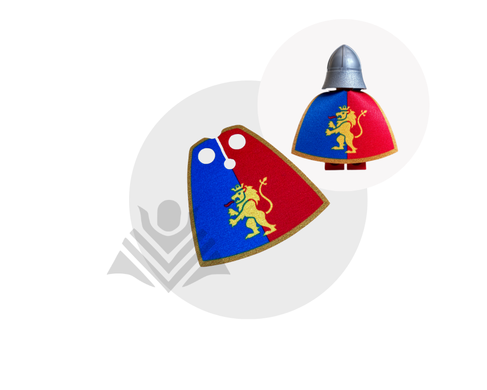 Give your minifig a regal, courageous look with this Lion Knight-inspired cape in blue and red! Made from high-quality fabric, it’s durable and easy to put on. Perfect for royal defenders, brave warriors, and medieval heroes! Minifig not included.