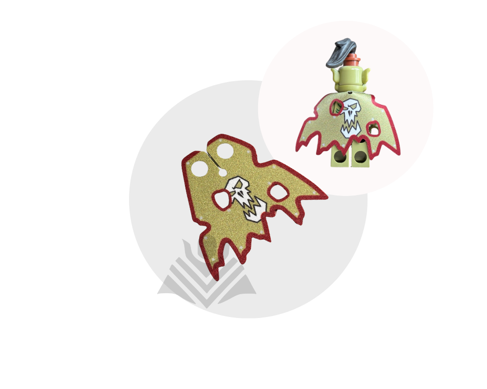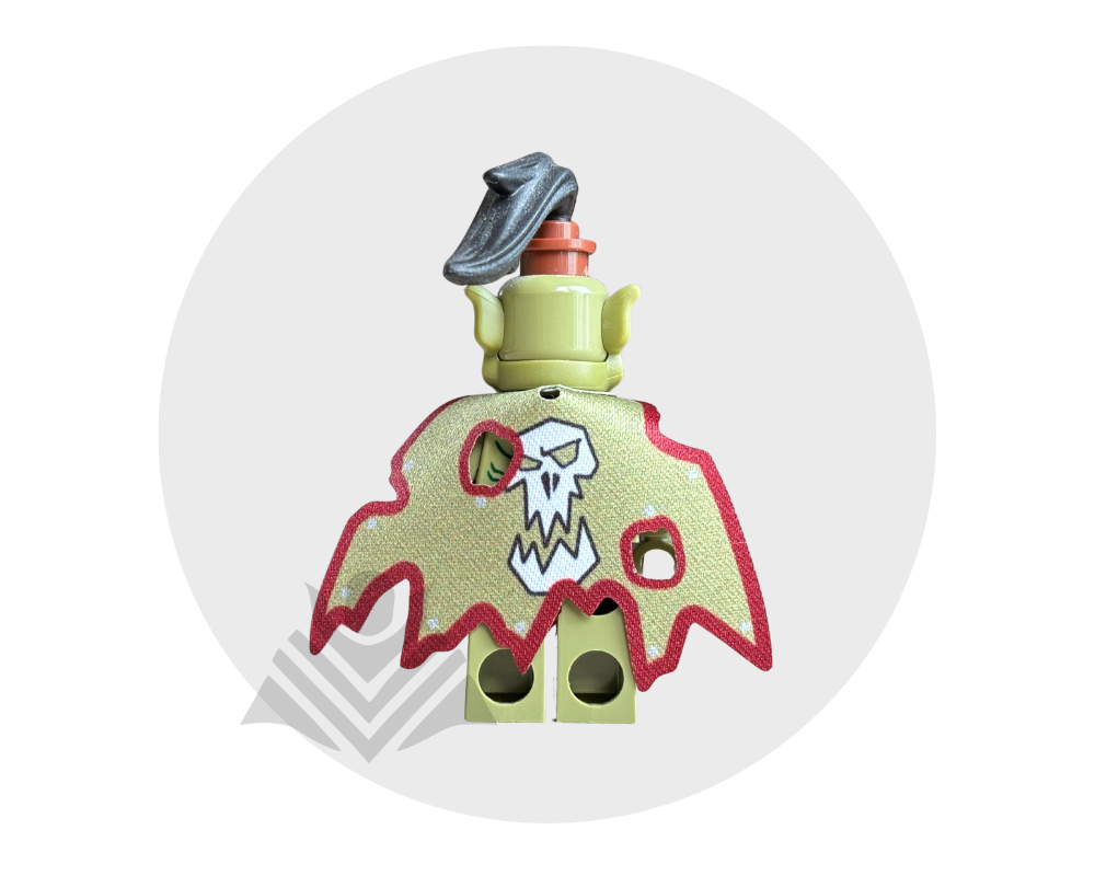 Give your minifig a savage, battle ready look with this olive green Orc-inspired printed cape! Made from high-quality fabric, it’s durable and easy to put on. Perfect for raiders, warlords, and fantasy armies! Minifig not included.