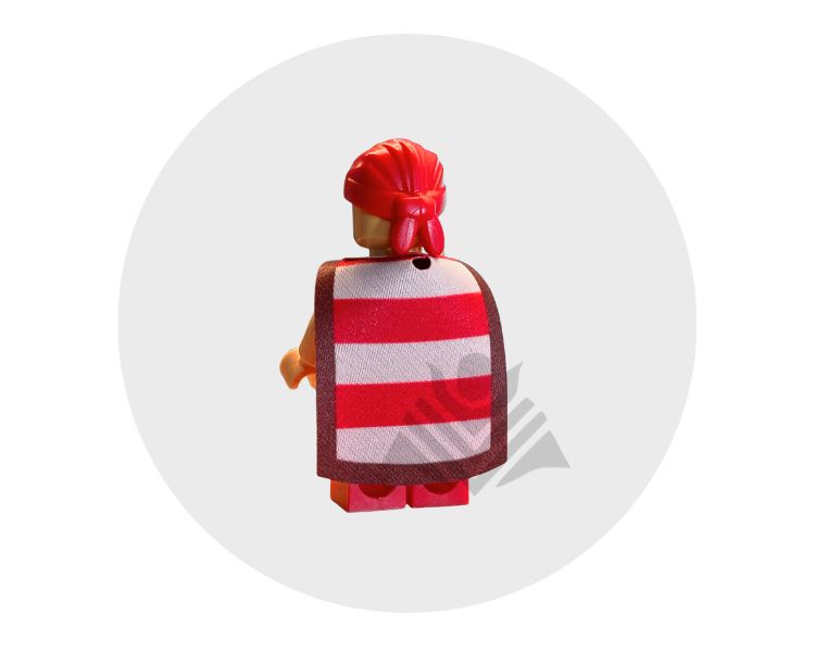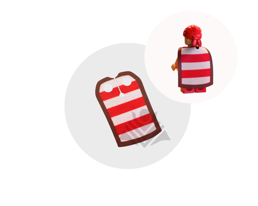 Give your minifig a classic pirate look with this red and white pirate inspired cape. Made from high quality fabric, it is durable and easy to put on, perfect for captains, crew members, and adventurous scenes. Minifig not included.